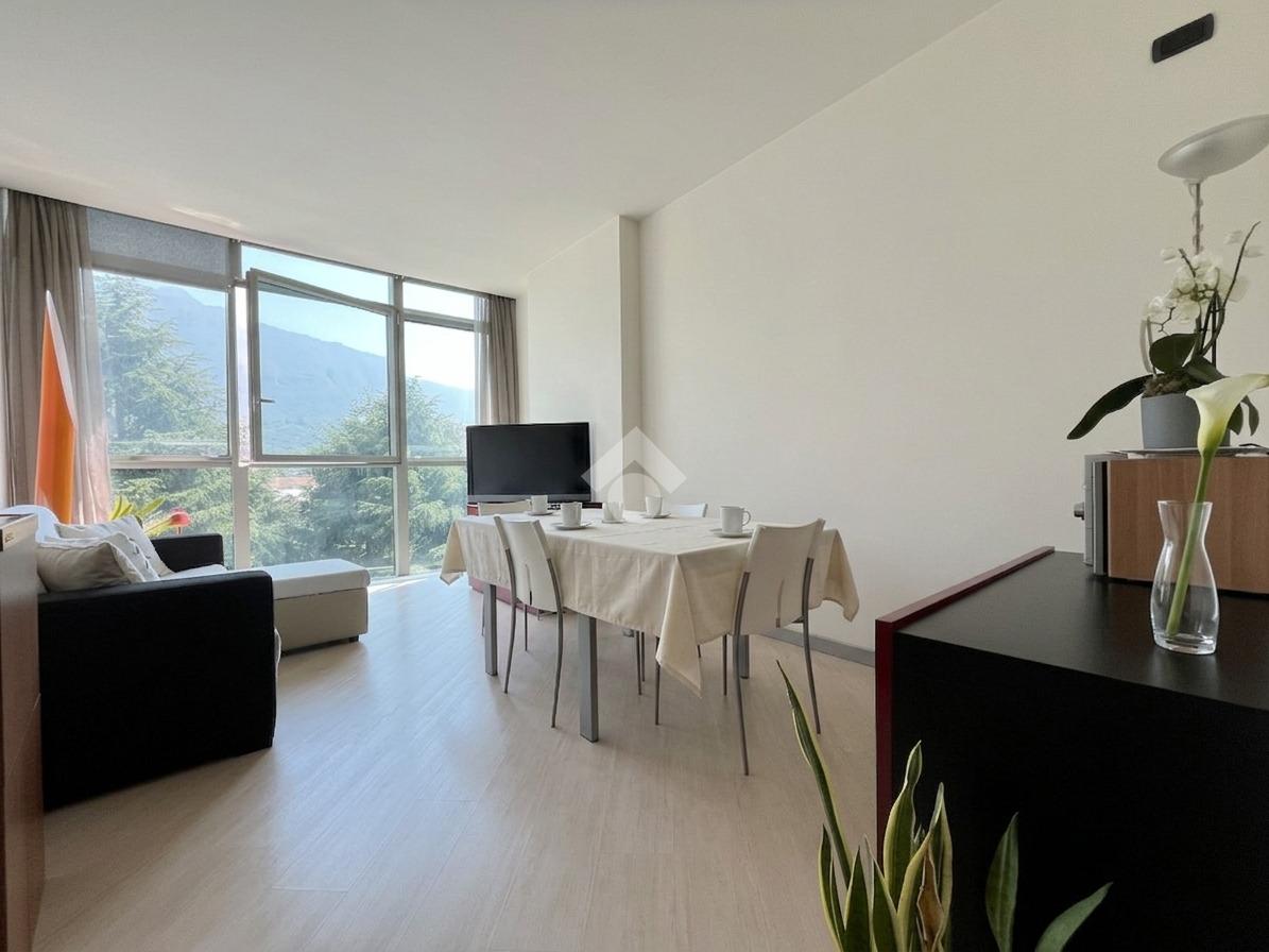 Nel cuore di Lecco, all'interno del rinomato Complesso Meridiana, proponiamo in locazione un esclusivo bilocale situato al quarto piano della prestigiosa Torre A. L'appartamento viene consegnato interamente arredato con mobilio moderno dalle linee essenziali e raffinate.
