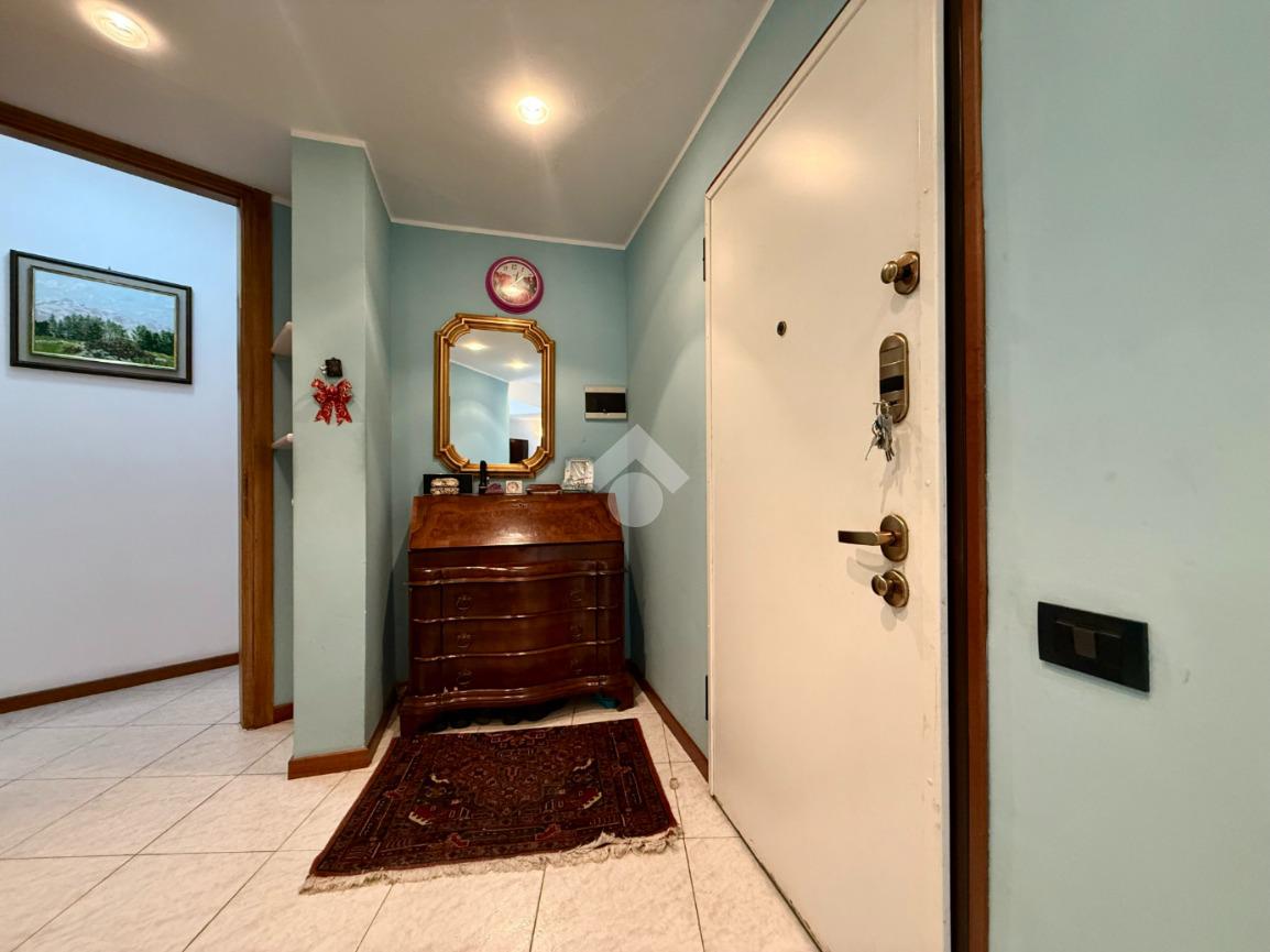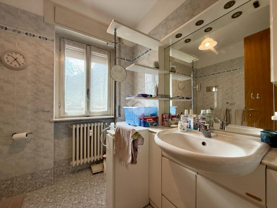 L’appartamento è composto da quattro locali, con due camere singole e una spaziosa matrimoniale. I doppi servizi offrono comfort e praticità: uno dei bagni, finestrato e completo di doccia e vasca, è posto all’interno alla camera padronale.